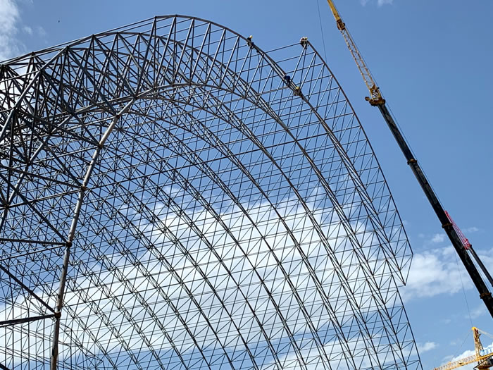 (2)网架加工前应对现场尺寸进行复测,确认无误后方可进行加工、安装;网架制作、运输、安装应遵守《空间网格结构技术规程》JGJ7-2010、《钢网架黄海螺栓球节点》JG/T 10-2009、《钢网架黄海螺栓球节点用高强度螺栓》 GB/T 16939-2016、《黄海钢结构黄海工程黄海施工规范》 GB50755-2012、《黄海钢结构黄海工程施工质量验收标准》 GB50205-2020。